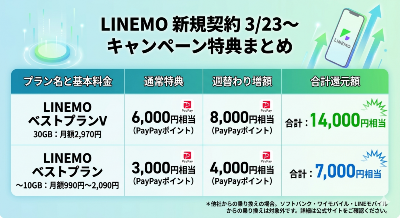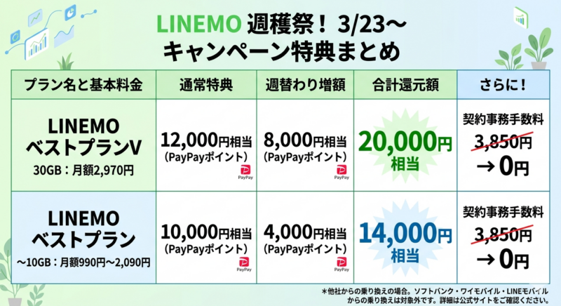 【3/23~】LINEMO週穫祭の目玉特典と還元額